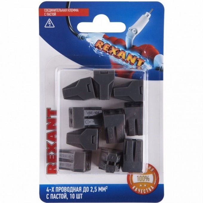 Экспресс-клемма с пастой REXANT СМК 773-304, 4-проводная до 2,5 мм² серая, (блистер 10 шт) 06-0207-B10