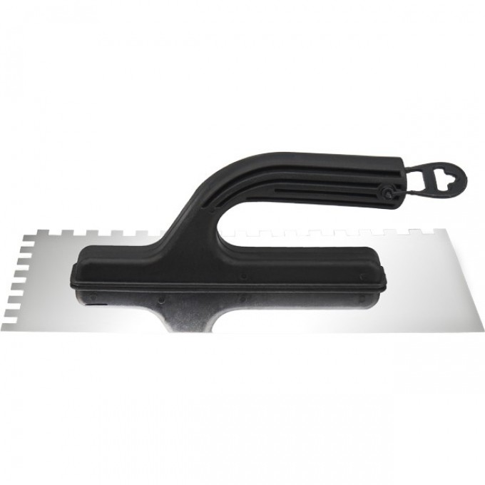 Гладилка прямая (зубчатая) изготовлена из нержавеющей стали, оснащена эргономичной пластиковой ручкой. Используется для качественного нанесения различных сухих смесей, их распределения по поверхности, а также сглаживания неровностей и швов. В ремонтных, а также отделочных работах гладилка малярная и штукатурная используется повсеместно. Она незаменима в случаях, когда необходимо нанести много раствора тонким слоем.