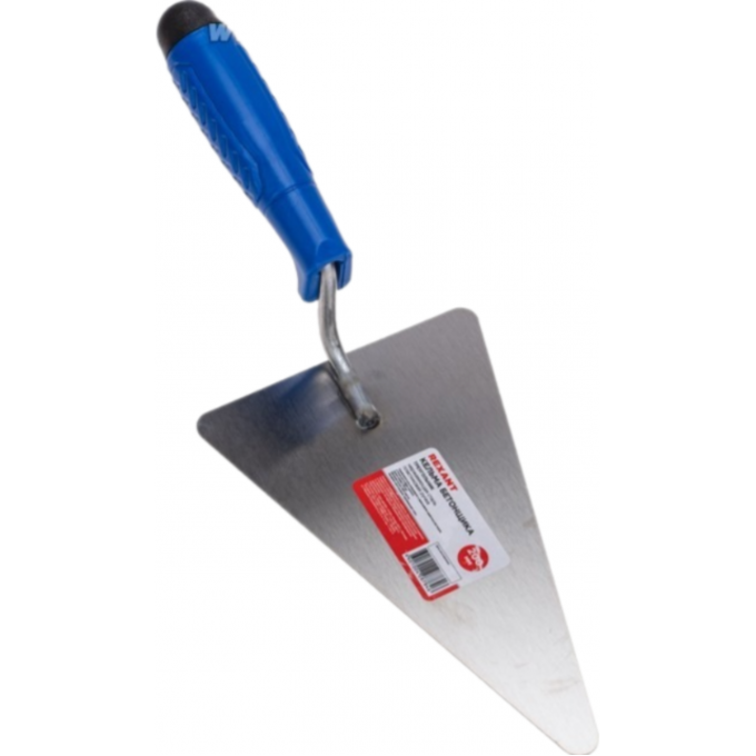 Кельма бетонщика – это незаменимый инструмент для отмеривания и замешивания цементных растворов, а также для кладки кирпича. Полотном в форме закругленного треугольника с прямыми гранями удобно удалять излишки раствора и работать в труднодоступных местах.