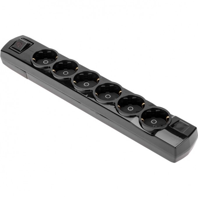 Колодка REXANT PREMIUM 6 гнезд, с/з, с выключателем, черный 13-4406