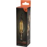 Филаментная лампа обладает характерной вытянутой формой с заостренным кончиком, напоминающим язык пламени на ветру. Имеет прозрачную колбу, которая пропускает больше света и обеспечивает высокую яркость. Мощность – 9,5Вт, цоколь – Е14.