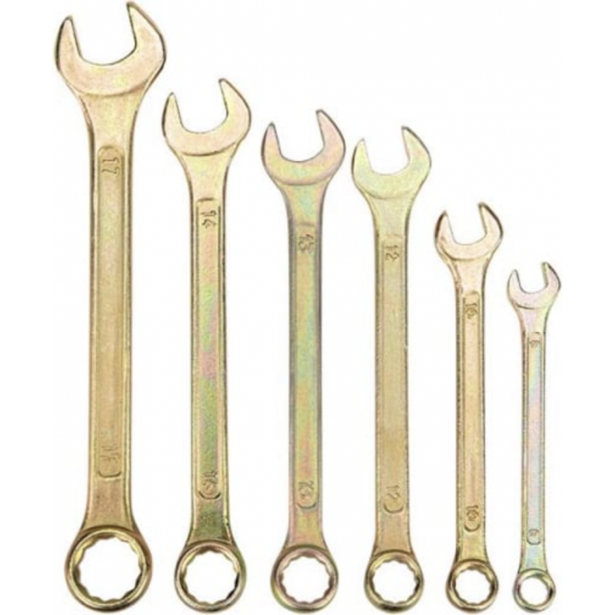 Набор комбинированных ключей REXANT 8-17 мм, 6 шт желтый цинк применяется для монтажа и демонтажа резьбовых соединений, таких как гайки и болты.