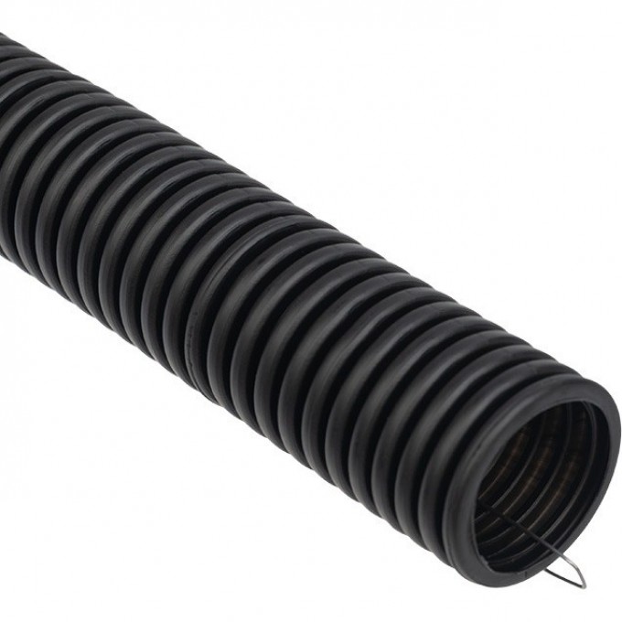 Труба гофрированная из ПНД с зондом, черная Ø 25 мм (бухта 50 м/уп.) REXANT из полиэтилена низкого давления отлично подходит для защиты изолированных проводов и кабелей от механических повреждений и агрессивного воздействия окружающей среды при прокладке сложных систем и трасс. Применяется для скрытой и открытой прокладки в несущих и ограждающих конструкциях из несгораемых материалов жилых, административных и производственных зданий и сооружений.