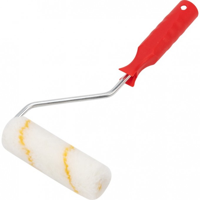 Валик состоит из пластмассового цилиндра, мягкой шубки, бугеля (изогнутого металлического стержня) и удобной пластиковой рукоятки.