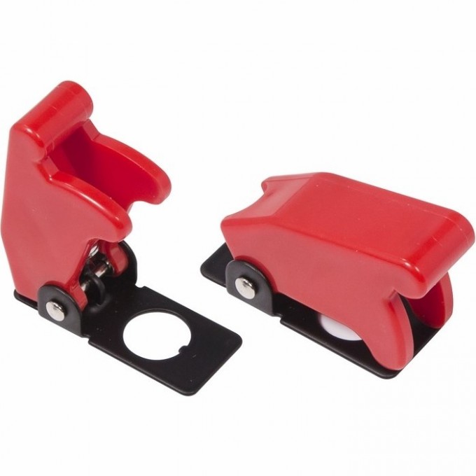 Защитная крышка для тумблеров типа KN и ASW  красная предназначена для защиты от случайной коммутации переключателя во включенное положение. Устанавливается без применения дополнительного крепежа совместно с тумблерами типа KN или ASW на лицевых панелях управления электрооборудованием (в измерительных приборах, блоках питания, электроустановках на различных производствах, легковых и грузовых автомобилях, поездах и многих других местах). Защита тумблера состоит из двух основных частей, соединенных пружинным механизмом: металлической пластины с круглым отверстием (Ø12мм) для установки на переключатель и пластмассовой крышки. Пружинный механизм удерживает крышку в закрытом, либо открытом положении. Для переключения в открытое положение требуется приложить некоторые усилия. Разнообразные цветовые варианты исполнения защитной крышки позволяют эффективно комплектовать панели управления.